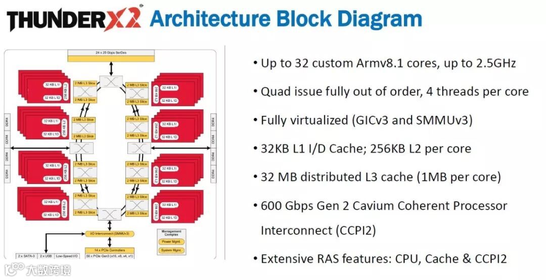 从性能及功能表现等角度来看,Cavium ThunderX2是Intel Xeon Scalable及AMD EPYC 7000系列处理器的强劲竞争对手。让我们简要回顾一下ThunderX2的主要特性:
