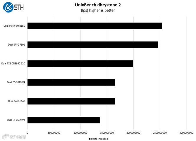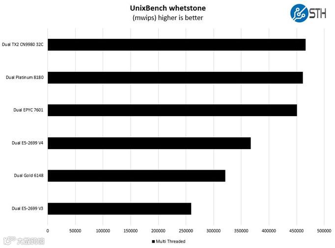 256线程双核ThunderX2芯片在多线程测试中表现最优。