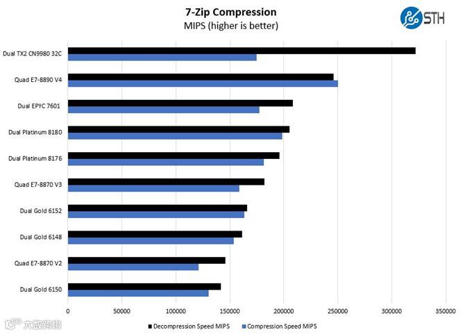 我们使用7zip来测试压缩/解压缩性能。并会通过测试结果来说明为什么ThunderX2与众不同。