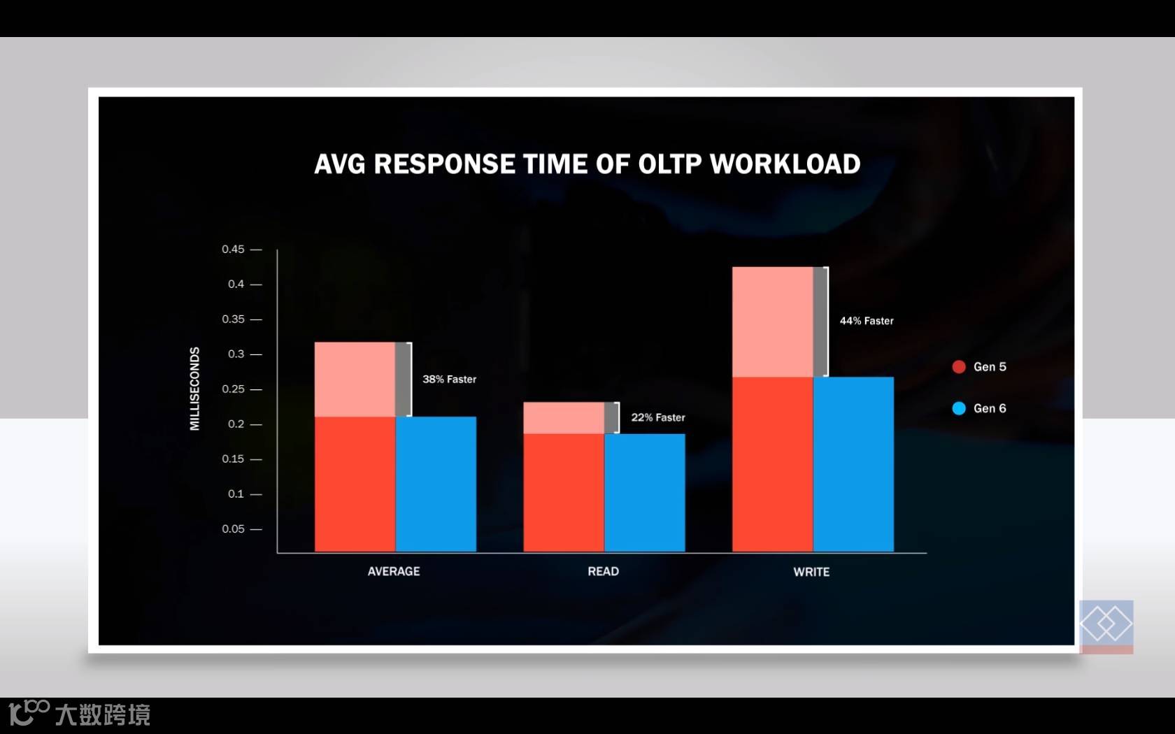 事务性数据库应用程序会对后端数据库同时执行读取和写入操作。测试结果显示,采用第六代技术,事务性数据库工作负载的响应速度提高了38%。写入的数据可立即通过读取I/O请求进行检索和处理,第六代光纤通道的响应速度可大幅提高存储和服务器的ROI。