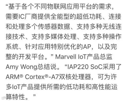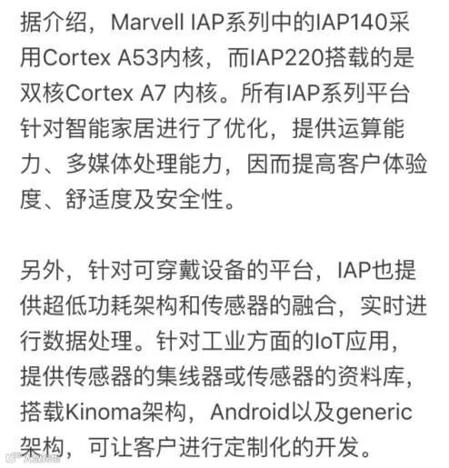 •Marvell IAP220 SoC内置多媒体支持,包括3D绘图引擎、显示器控制器、数字摄像机接口和视频编解码器,因此该SoC非常适合使用触控屏幕和高端操作系统(OS)的家庭自动化产品,包括智能家电和安全系统。