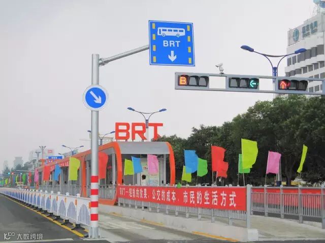 BRT是快速公交系统(Bus Rapid Transit)的简称。一种新型地面交通运营系统,拥有封闭式公交专用行车道,它介于轨道交通与常规公交之间,像地铁一样在专用通道内运行,同时设有买票、检票、候车的站台,具有运力大、快捷、舒适、便宜、省时等优点,人称“路面地铁”。