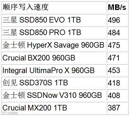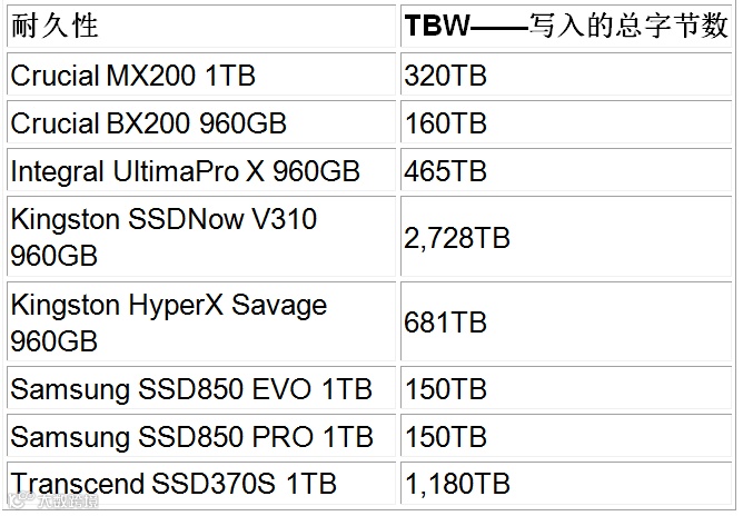 作者考察了8款驱动器:Crucial MX200 1TB、Crucial BX200 960GB、Integral UltimaPro X 960GB、金士顿SSDNow V310 960GB、金士顿HyperX Savage 960GB、三星SSD850 PRO 1TB、三星SSD850 EVO 1TB和创见SSD370S 1TB。