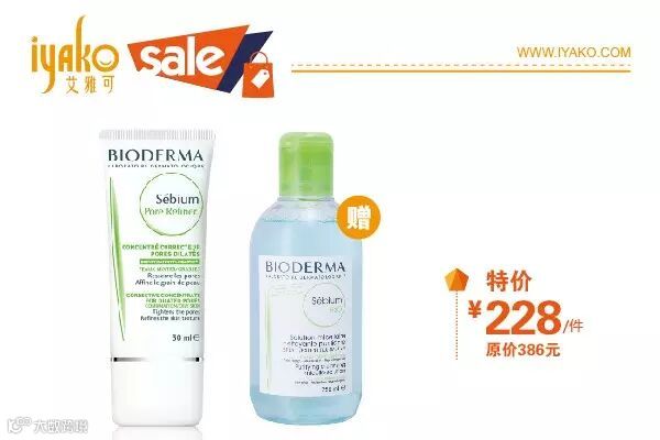 ④ 贝德玛净妍控油修护套装(净妍毛孔修护乳30ml+净妍洁肤液250ml)原价:386元 特价:228元;