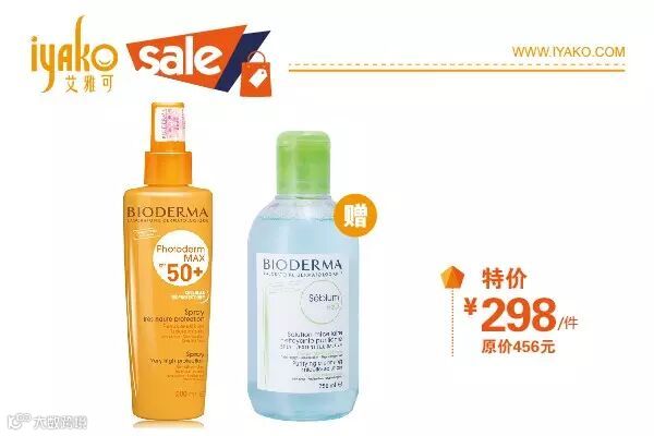 ③ 贝德玛夏日控油防晒礼盒(皙妍倍护防晒喷雾SPF30+ 200ml + 净妍控油洁肤液 250ml) 原价:456元 特价:298元;
