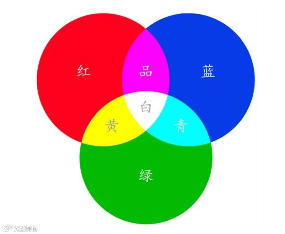 通过精确控制三种激光的强度比例,就像画家调配颜料一样,可以产生任意颜色。比如: