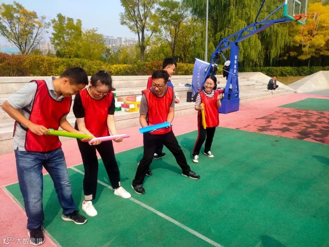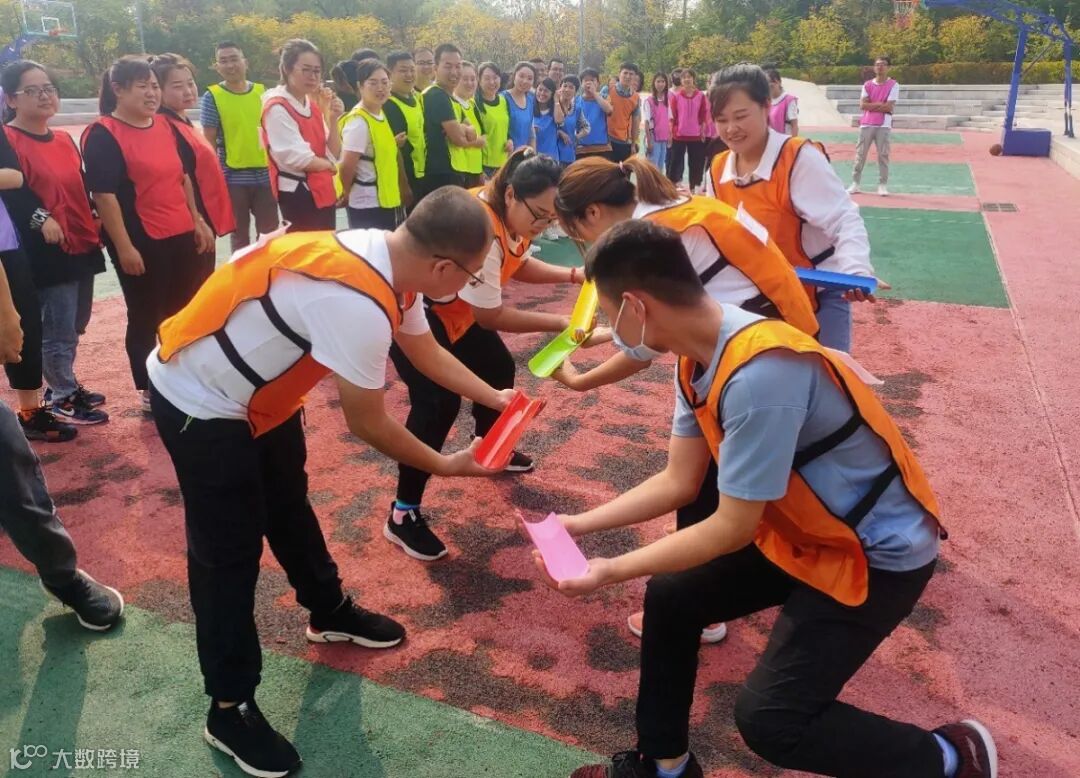 我们举行的第一个游戏—珠行万里,即通过长长的管板运送小球。这个项目迅速凝聚了大家的斗志,队员们各显神通出奇招,运输的速度越来越快。