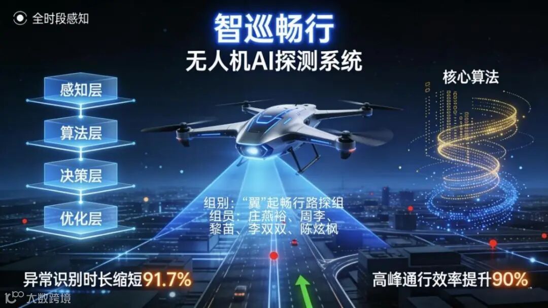 系统采用“采集-预处理-智能分析-决策输出”四层架构,通过无人机多模式巡航采集全场景交通数据,经AI算法精准识别异常、预判车流,快速输出管控指令。核心指标表现优异,数据采集准确率99.5%,异常识别准确率≥99%,车流预判误差率≤4%。