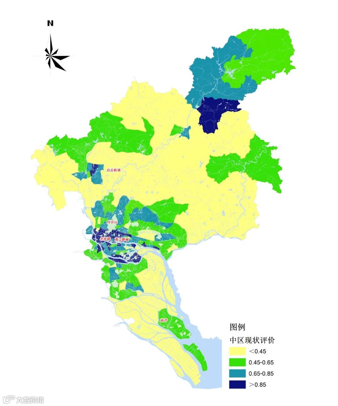 广州新的空间结构具体表现为:与周边城市的全面深度融合,以及“一轴一带、三核四极”的市域网络型空间结构。交通规划提出了以高快速路和快速轨道交通互联互通、以重大交通枢纽为支撑的总体方案。
