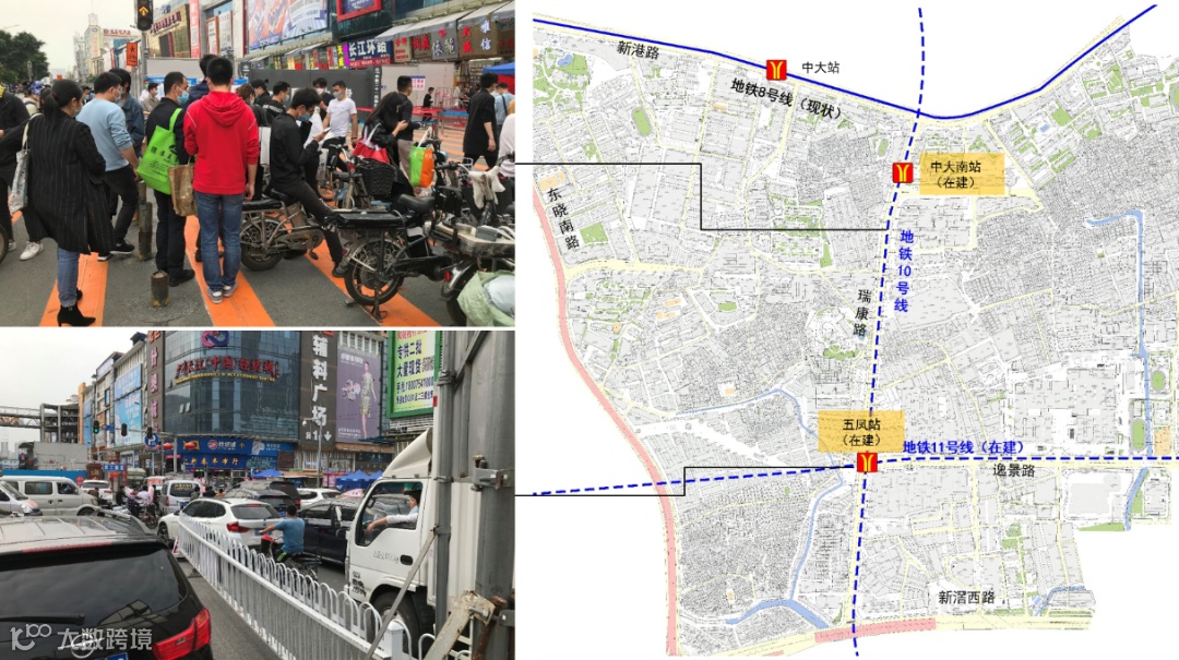 中大布匹市场商圈位于广州市海珠区,是全国最大的布匹专业批发市场,现有商户2万多户以及制衣厂、作坊、店铺3万多家,从业人员超过40万人,年交易额超过2000亿元。中大布匹市场商圈不仅是海珠区就业人口密度最高的区域,同时也是居住人口最高的区域,随着广州地铁10号线中大南门站和11号线五凤站地铁的先后施工建设,该地区交通拥堵日益严重,且有加剧之势,亟需进行交通改善提升。