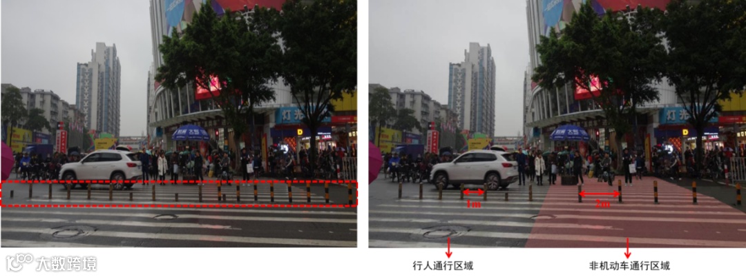 图5 人行横道过街优化前(左)后(右)方案图