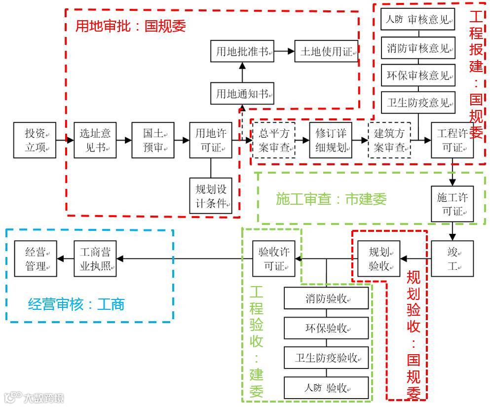 根据相关规定,建筑工程规划管理,主要包括用地审批、工程报建、施工审查、规划验收、工程验收、经营审核等六大程序。