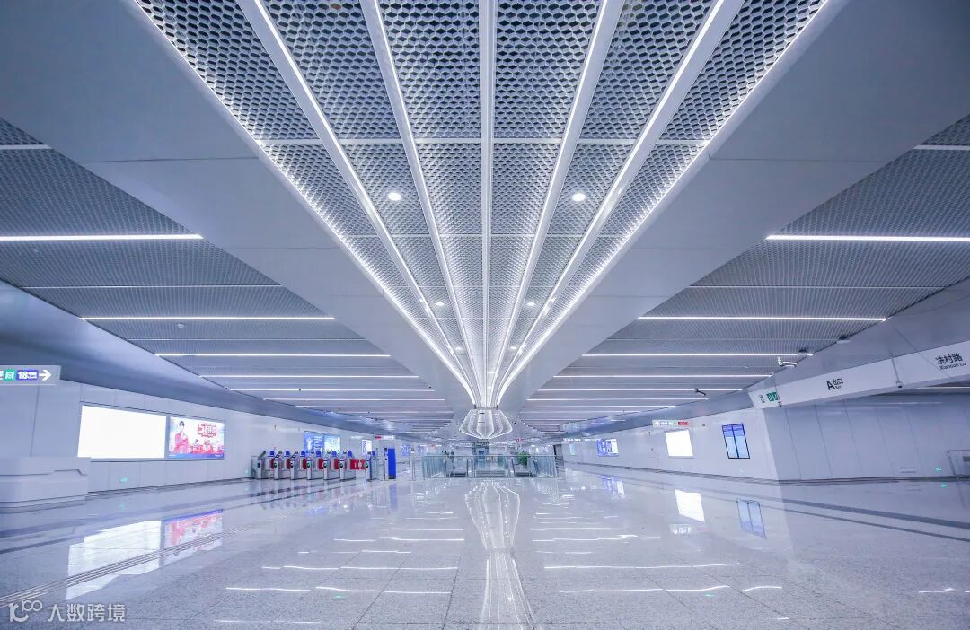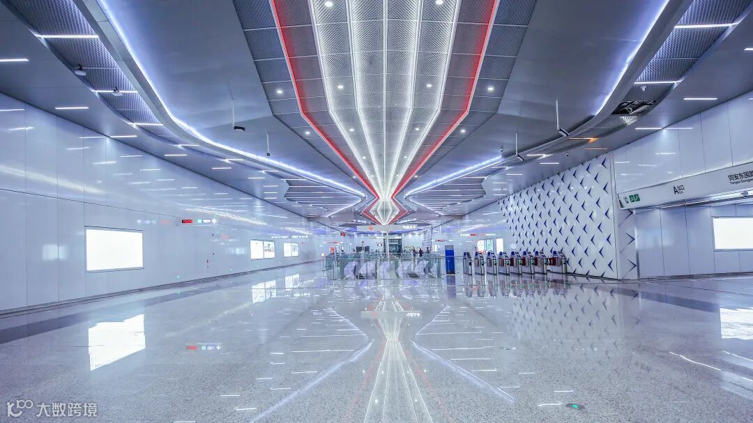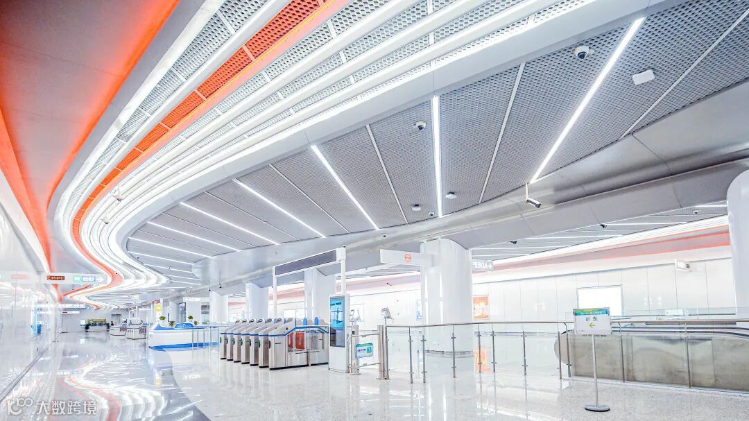 进入车站,乘客基本看不见悬挂式设备设施。车站引入间接照明设计,运用智慧照明控制系统,控制并调节色温和色调,让车站实现和定制充满艺术表现力的光环境场景,更具未来感和科技范。