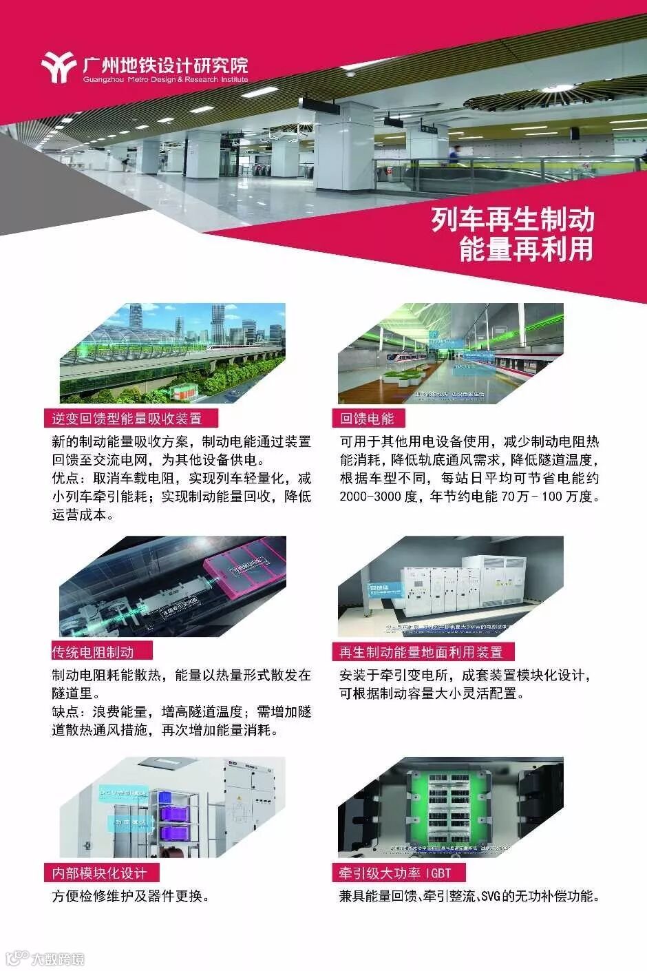 在牵引能耗方面,地铁列车牵引启动时电能转化为动能,制动时动能转换为电能,此部分能量约为列车牵引能量的50%。而新增的逆变型再生制动能量回馈装置将有效利用牵引制动时所产生的能耗。逆变型再生制动装置不仅能完美地解决制动能量消耗的问题,同时完美解决列车制动时牵引网压升高的问题,不仅如此,还能取消过往设置的车载制动电阻,将有效降低车身重量,减少车载设备,能更充分的利用牵引制动的能耗,在节省电能的同时,降低隧道问题,提高乘客服务体验。根据估算,预计平均一条线一年可节约能耗1600万度,节省电费过千万元。