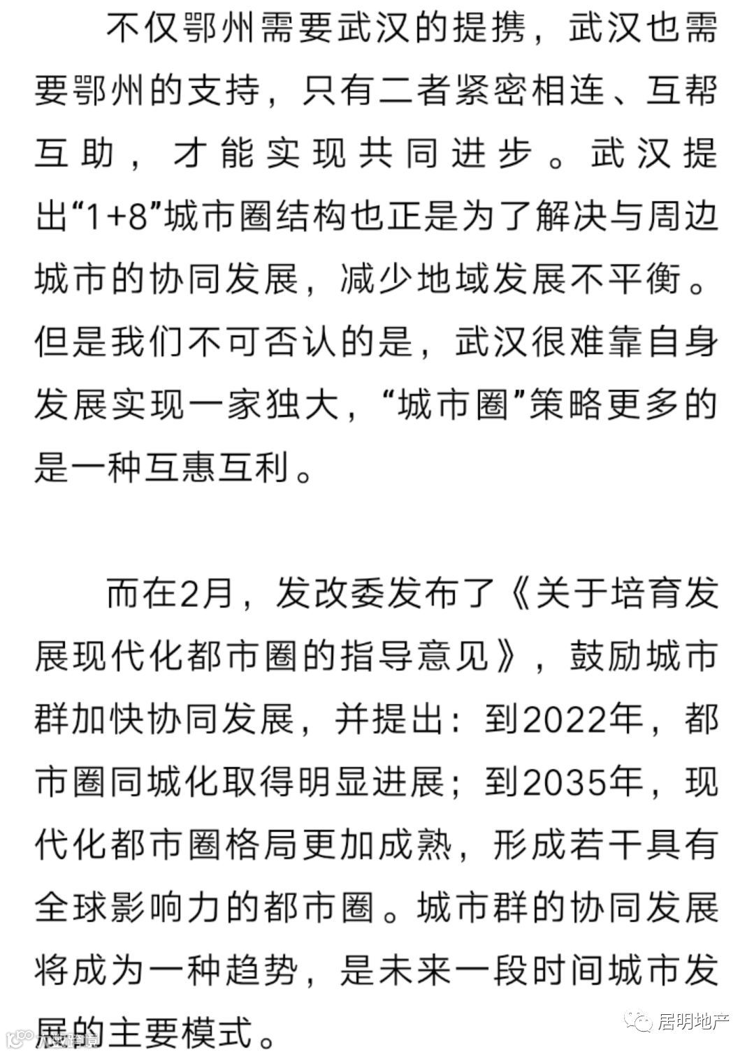 2016年底,武汉建设国家中心城市成功获国务院批复同意,并明确表明支持态度。继北京、上海、天津、广州、重庆、成都之后,武汉和郑州一同跻身国家中心城市队列。两年多的时间过去了,武汉城市发展的速度有目共睹:轨道交通建设日新月异,去年一年就开通了4条线路;今年更是会承办世界级赛事——军运会,新建及改造了35所场馆。武汉,在发展上一路高歌猛进,主城区已经逐渐饱和,部分远城区也都基本完善。而随着武汉越走越远,对于周边城市的带动作用也势必成倍增长。