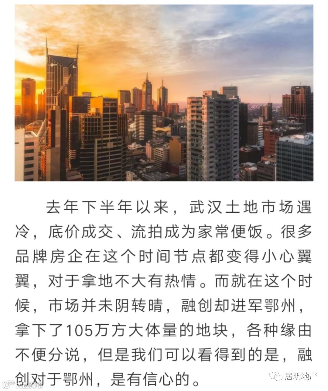 与此同时,融创又在鄂州拿地了。3月20日,来自鄂州市招投标部门官方消息,鄂州融汇致远置业有限公司以总价24.98亿元的底价拿下鄂州滨湖东路东侧、驰恒之城小区南侧WG(2019)017-019地块,这三块地块合计105万方,三块地合计成交楼面价2375.5 元/平方米。该地块位于鄂州鄂城区,是原文体中心地块,105万方的体量堪称鄂州城区地王,东侧方向布局有顺丰机场。