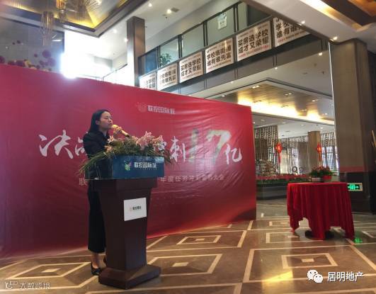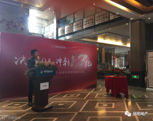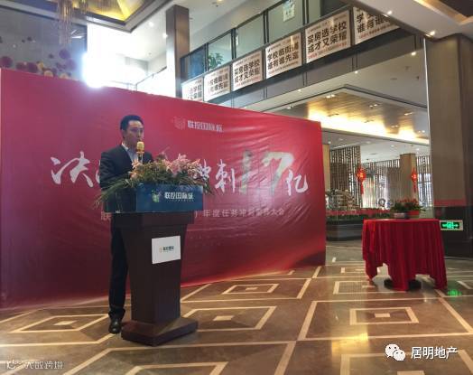 居明公司董事长居总上台发言,发言之前向黄冈团队深深鞠了一躬,对黄冈团队的努力表示感谢,同时表达公司也时刻关注着黄冈项目,并对所有员工提出了更高的要求,将实现联投国际城的销售奇迹而势在必得!