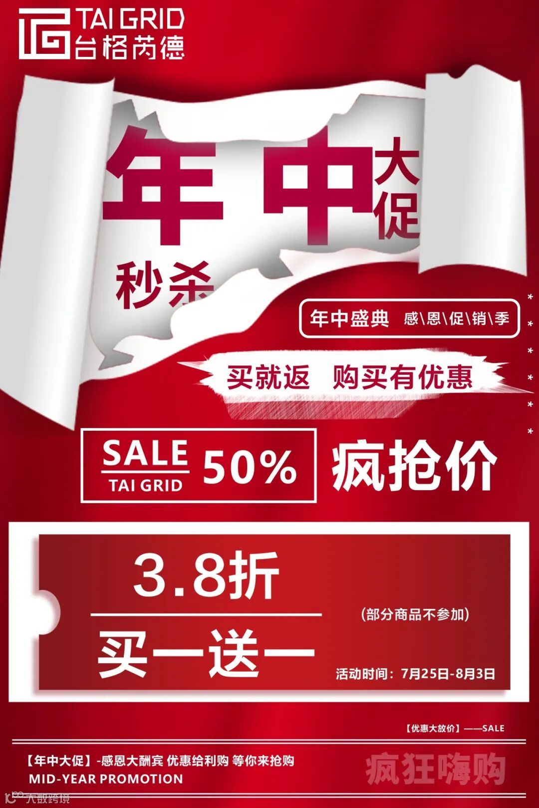 本次清仓活动时间为7 月 25日 - 8 月 3 日