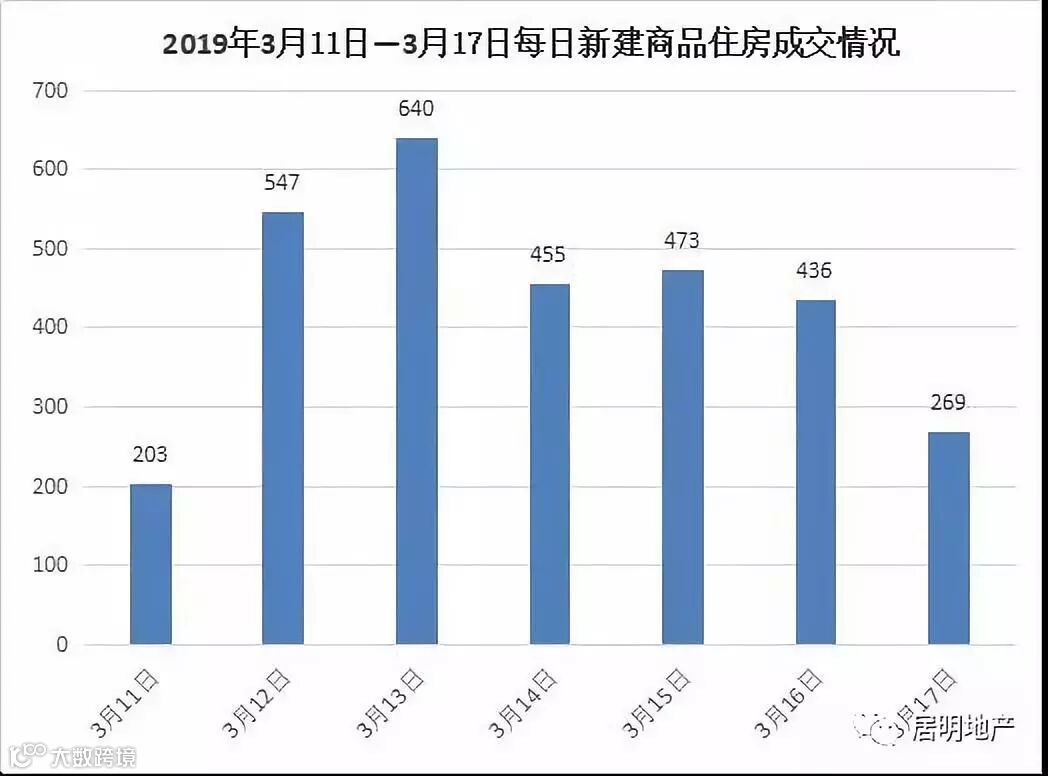 从新建商品住房单日成交来看,日均成交量约为431套,其中成交最高日是3月13日,为640套,3月11日和17日成交不足300套。