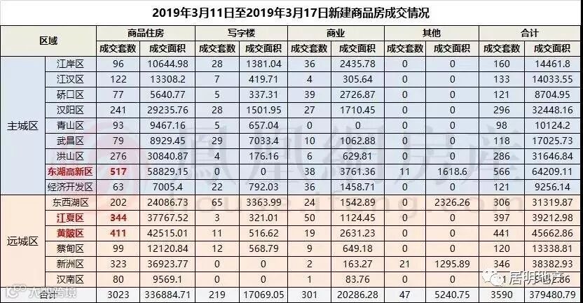 从成交区域来看,上周东湖高新区成交最多,为517套,其次是黄陂区411套,江夏区以344套位列第三。