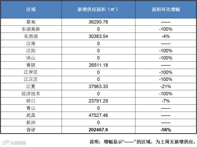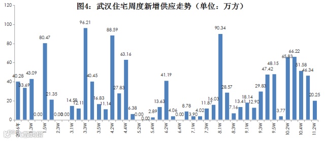 11月第2周,新增住宅供应量为20.25万方,排在前三分别为武昌区4.75万方,江夏区3.80万方,蔡甸区3.63万方。