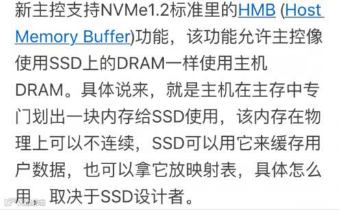 ,并且在业内第一个支持NVMe 1.2标准里的“主机内存缓冲”(Host Memory Buffer/HMB),有了这一功能,固态硬盘不再需要额外搭配DRAM,只需借助系统主内存就能达到同样的高性能,同时成本和功耗更低。