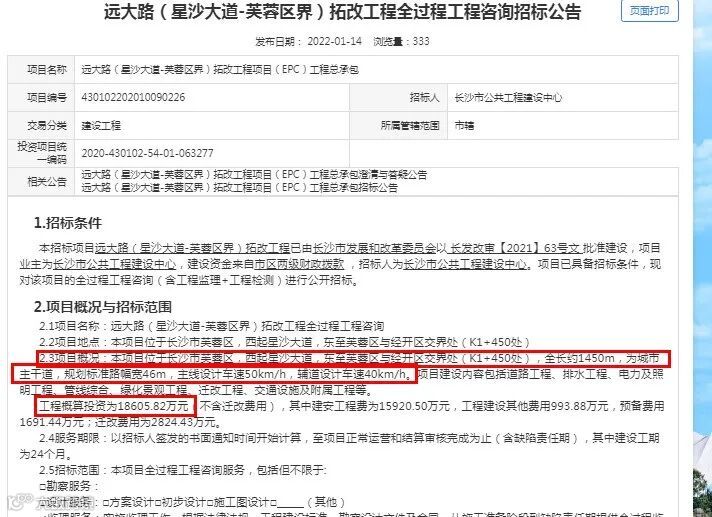 近日,长沙发布了远大路(星沙大道-芙蓉区界)拓改工程全过程工程咨询招标公告,远大路(星沙大道-芙蓉区界)拓改工程,位于长沙市芙蓉区,西起星沙大道,东至芙蓉区与经开区交界处(K1+450处),全长约1450m,为城市主干道,规划标准路幅宽46m,主线设计车速50km/h,辅道设计车速40km/h。总计费用超2亿,具体信息如下: