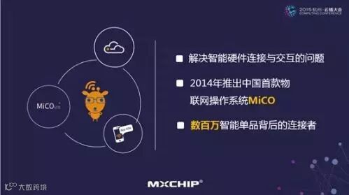 第三类是提供系统模块软硬件平台的服务商,目前国内比较成功的平台服务商当属庆科。早在2014年7月,上海庆科和阿里巴巴智能生活事业部共同打造的MiCO物联网首次发布之际就实现了与阿里智能云的无缝对接。阿里智能为智能硬件提供了Alink SDK,并通过 "庆科Wi-Fi模组+MiCO系统+阿里智能Alink SDK" 的组合方式,为客户打造完整的IoT智能硬件解决方案。据悉,目前采用这种方案的智能硬件数量已破百万,并稳定运行了一年多。同时,2015年发布的阿里巴巴智能化战略表明,阿里计划将打造一个开放的阿里智能平台,实现云端、移动端、设备端的互通,全力打造智能生活生态圈。