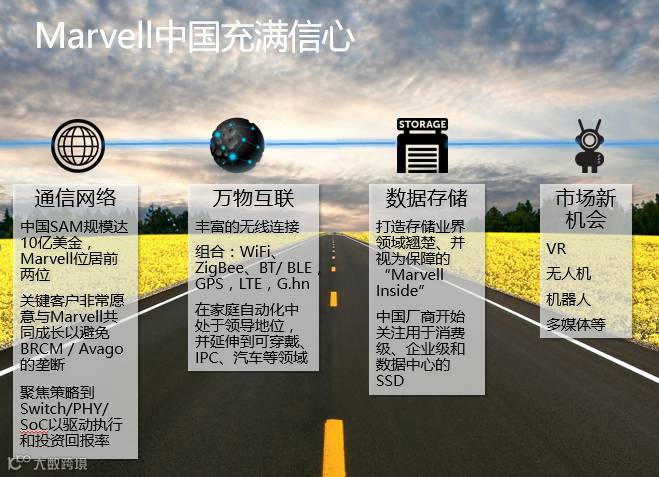 如今Marvell的核心业务及细分市场已经遍及四大领域:存储业务、Networking、可连接技术、定制化解决方案(ASSP,ASIC),而在新兴业务领域,Marvell不仅在物联网(IoT)方面得到了行业内外的广泛关注,在车联网以及多媒体方面的布局也同样领先业界。