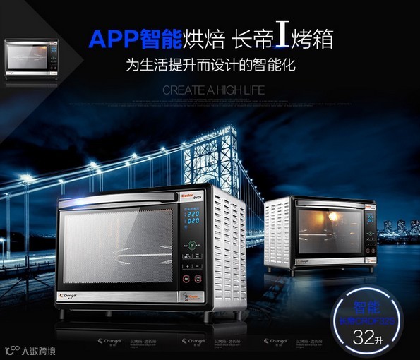 长帝CRDF32S烤箱,手机APP控制,Wi-Fi智能自动联网,智能显示温度时间,一键启动8大烘焙模式,即使异地也能随心控制烤箱。