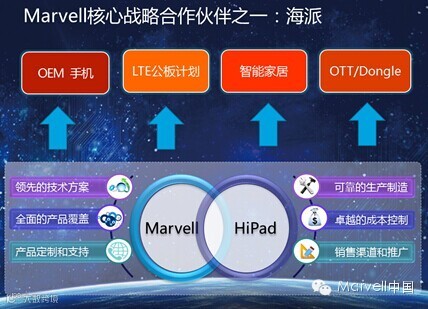 占据国内移动终端出货量前三位置的方案商海派通讯日前联合全球知名4G终端芯片供应商Marvell,在深圳举行主题为“一马当先,百川归海”的战略合作联盟发布会,双方宣布达成长期深度战略合作伙伴关系,携手开拓4G终端市场,同时海派隆重发布基于Marvell四核5模LTE单芯片平台PXA1920的ODM产品和多款公板产品。三大运营商和小米、联想、酷派、华为等领先品牌手机厂商均派中高层到场祝贺。