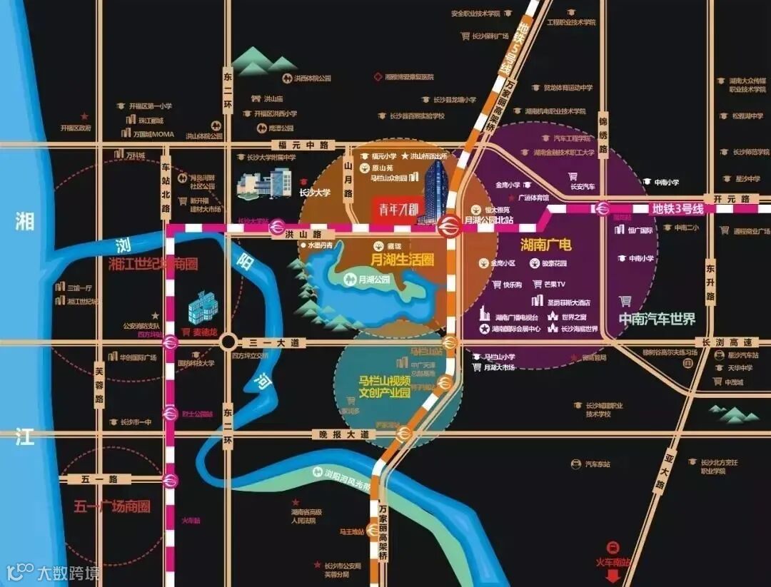 青年才郡位于北部大学城月湖生活圈地段,是金鹰文化区中心位置,北部大学城月湖生活圈核芯地段。扼守长沙东大门,向西毗邻湘江,南北分别以浏阳河和捞刀河为界,向东接壤长沙县,地域优势得天独厚。