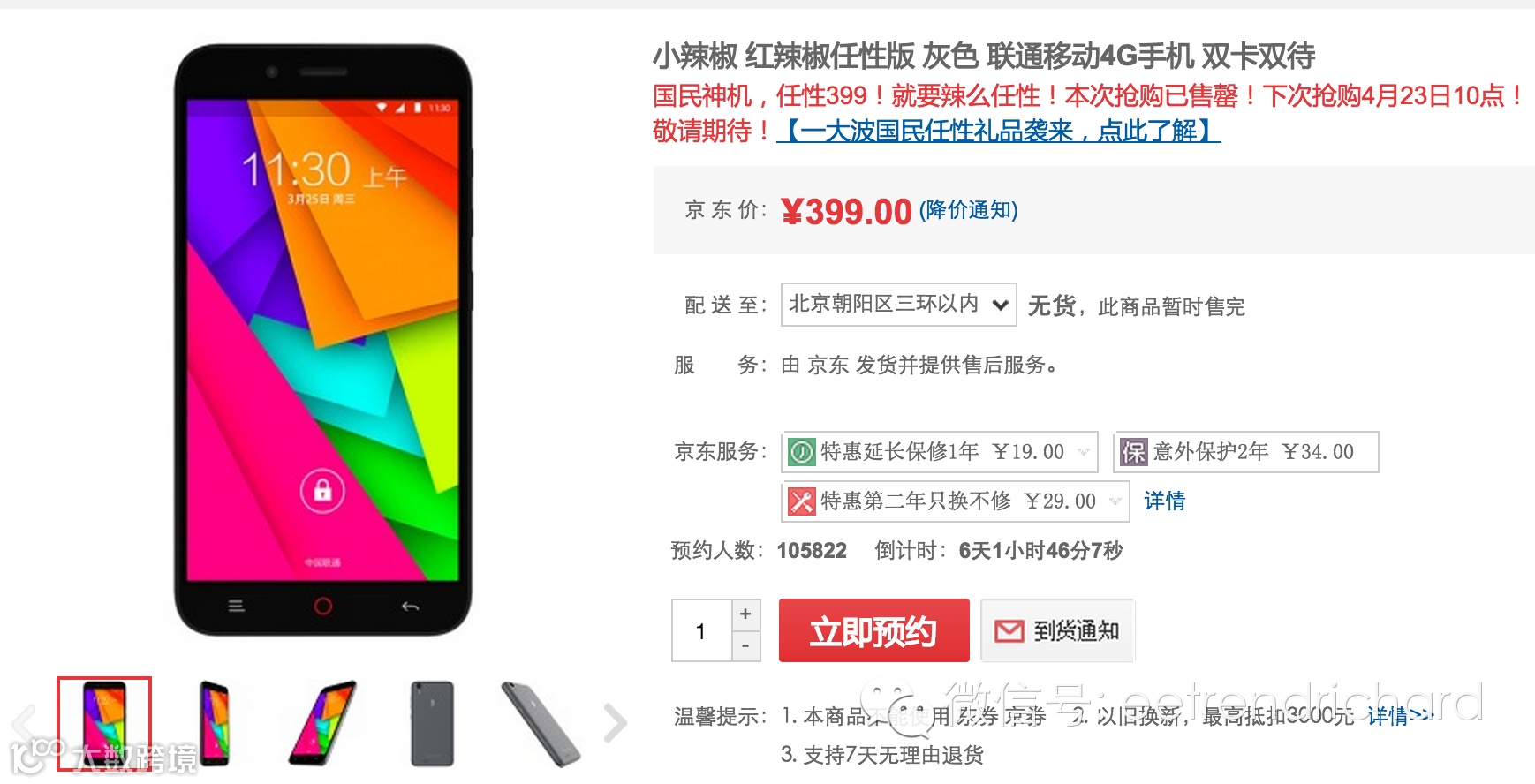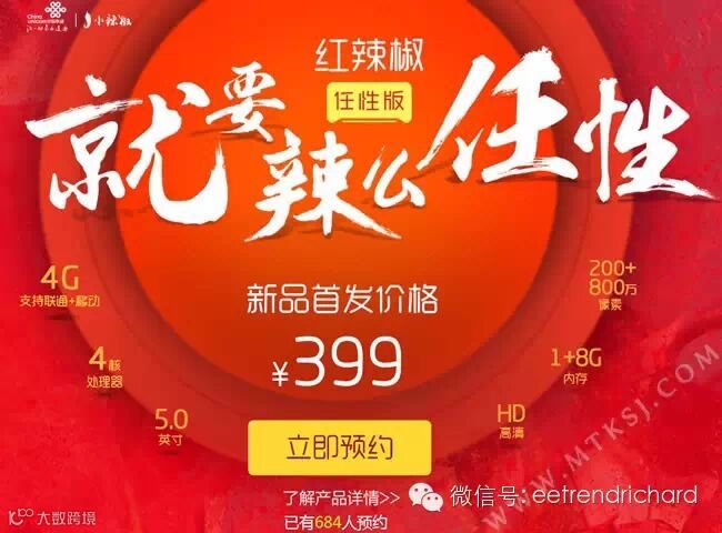 近日,由中国联通联合国内手机厂商小辣椒联合发布的399元的双4G国民手机红辣椒任性版在京东正式上市,30秒即被抢购售罄。抢到的人欣喜的开始盼望收货,没有抢到的则是希望下一批手机能够尽快生产出来,还有一类人群则是遗憾自己未能参与之前红辣椒任性版的预约活动,致使此次抢购只能望机兴叹。