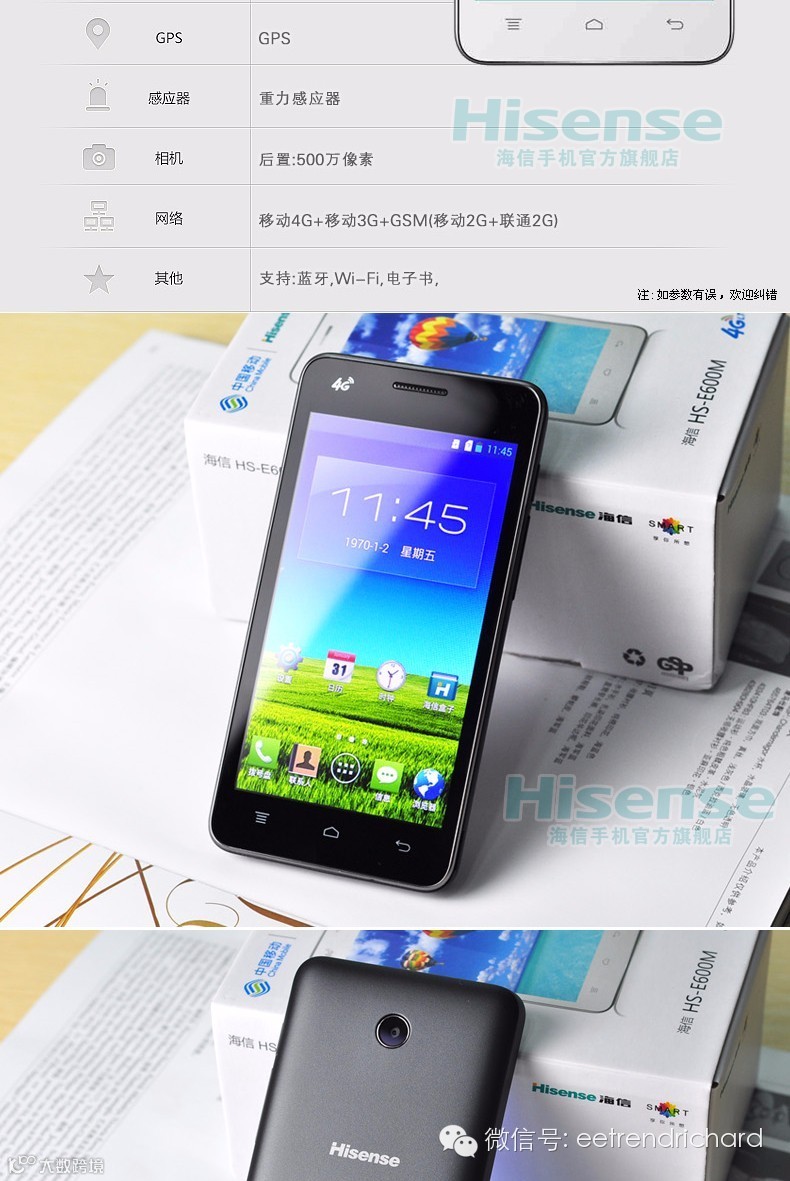 3.海信E600M:移动4G版四核安卓智能手机