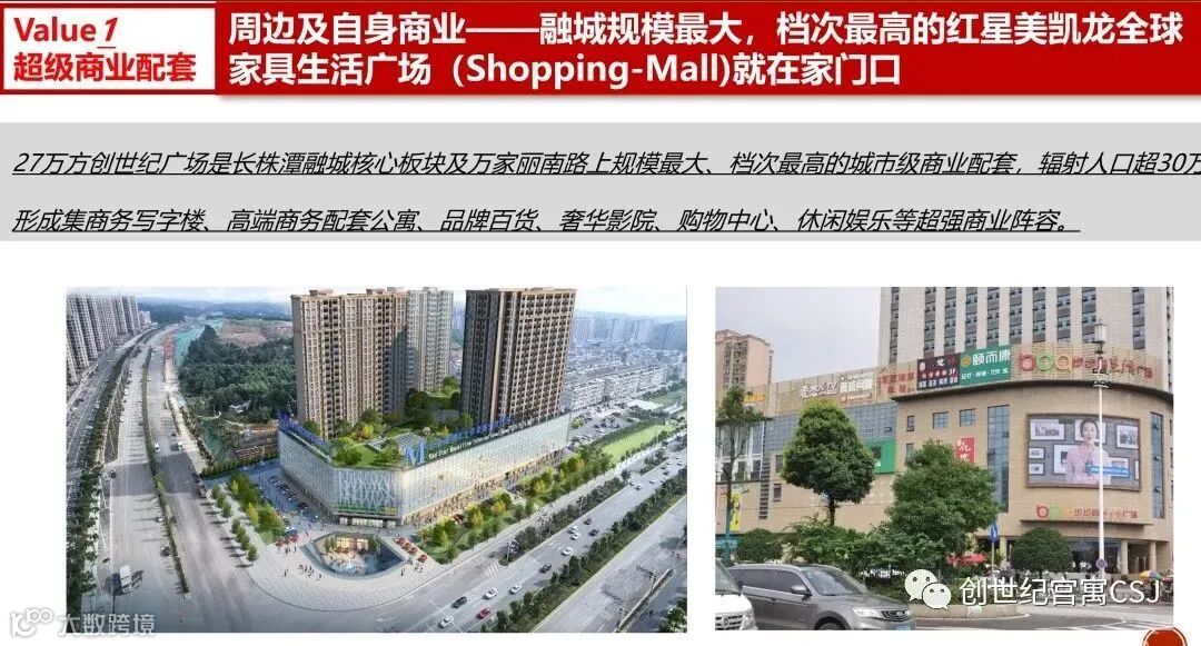 创世纪项目本身规划约8万方的超级商业,涵盖超市、KTV、沐足、特色餐饮、酒店、健身房、红星美凯龙等,步步高生活广场就在项目对面,友阿奥特莱斯,中海中兴广场,中海环宇城,鑫悦汇麦德龙超市举步即达,打造成都市级别地标。