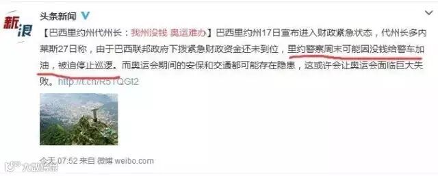 举办奥运会的里约州上个月17号正式宣布:财政破产了!我们真的没钱了!
