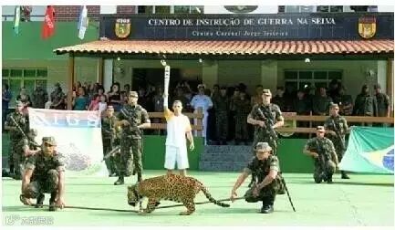奥运圣火传到巴西超有名的那个洲,亚马逊洲了。亚马逊的省会叫玛瑙斯,有各种各样的野生动物,因为奥运吉祥物是美洲豹,他们就搞了一头美洲豹来站台。