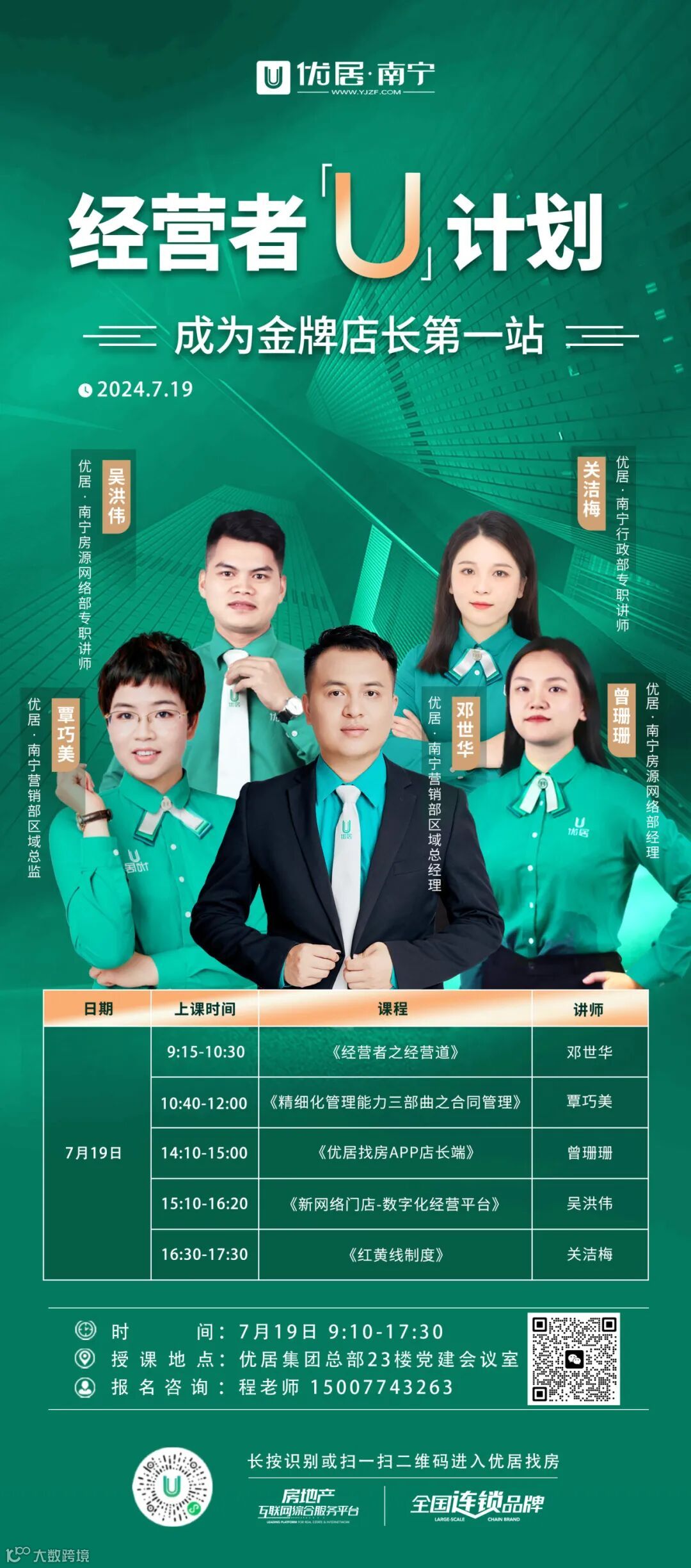 本月,优居·南宁培训发展中心持续针对经纪人、店长制定了一系列赋能培训课程。这些课程旨在通过系统化的学习与实践,全面提升经纪人的专业素养、服务技能及市场应对能力,同时增强店长的领导力、团队管理能力及业务战略规划能力,引领未来之路。