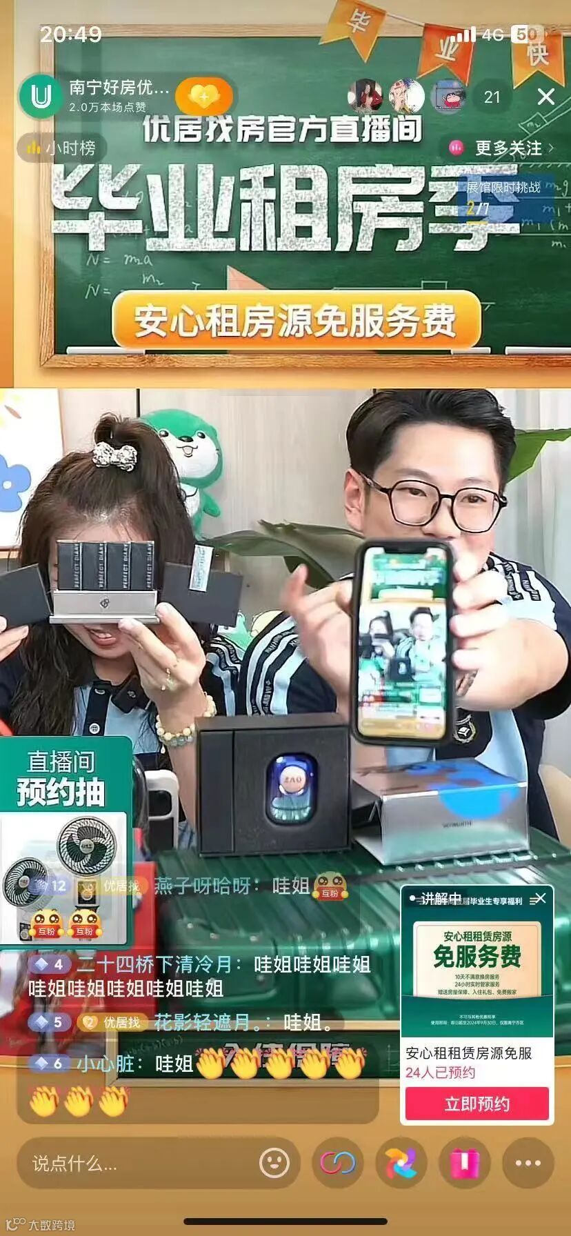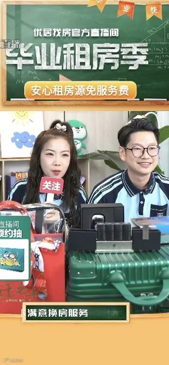 随着毕业季的到来,优居平台特别针对应届毕业生推出了租房免服务费的活动,在直播间预约专属安心租房源还有入住大礼包相送,还可以在直播间参与抽奖,多重礼品送不停,有效提升优居租赁业务的知名度。