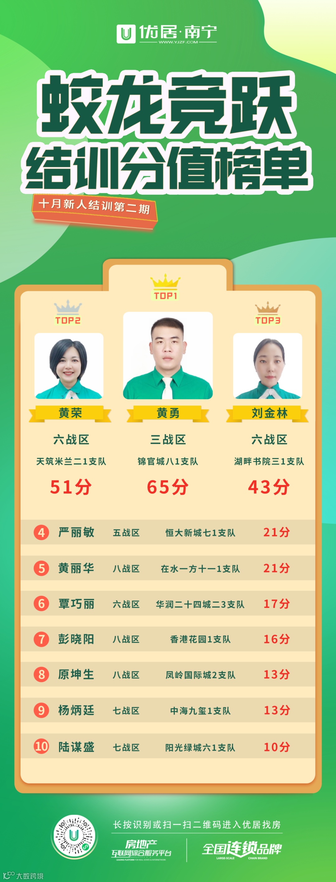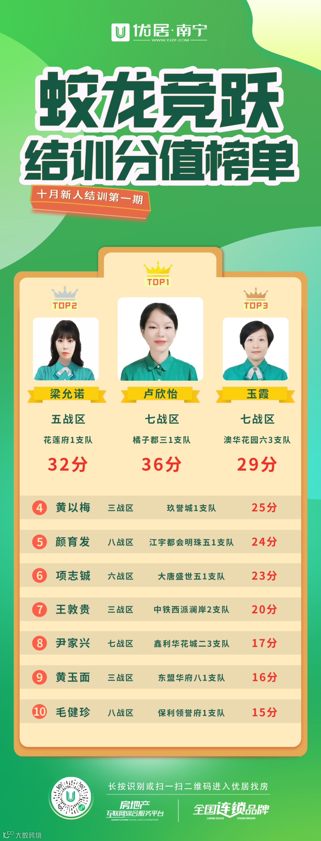 自蛟龙竞跃计划启动起,优居·南宁培训部紧跟升级步伐,积极应对,不断奋战,九月起至十月末,收益颇丰!