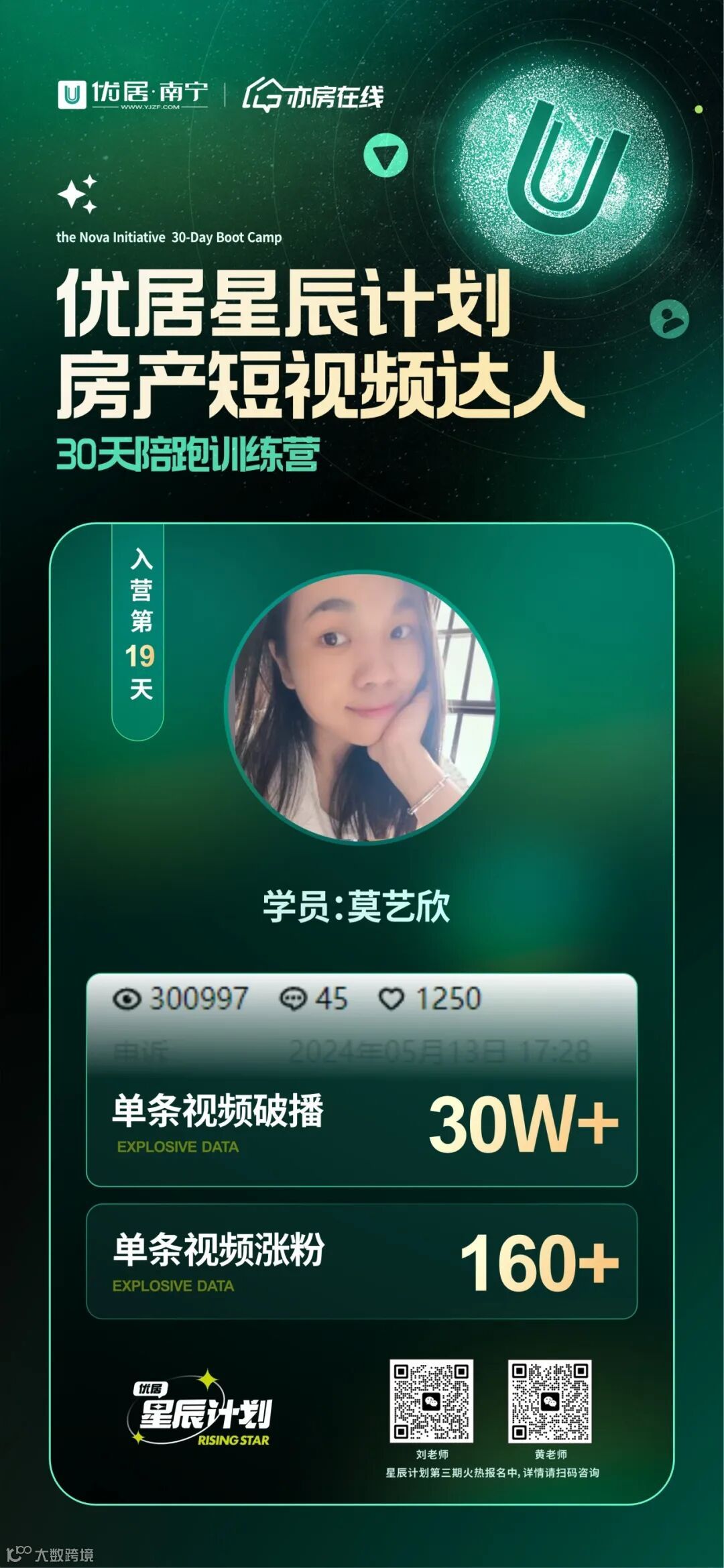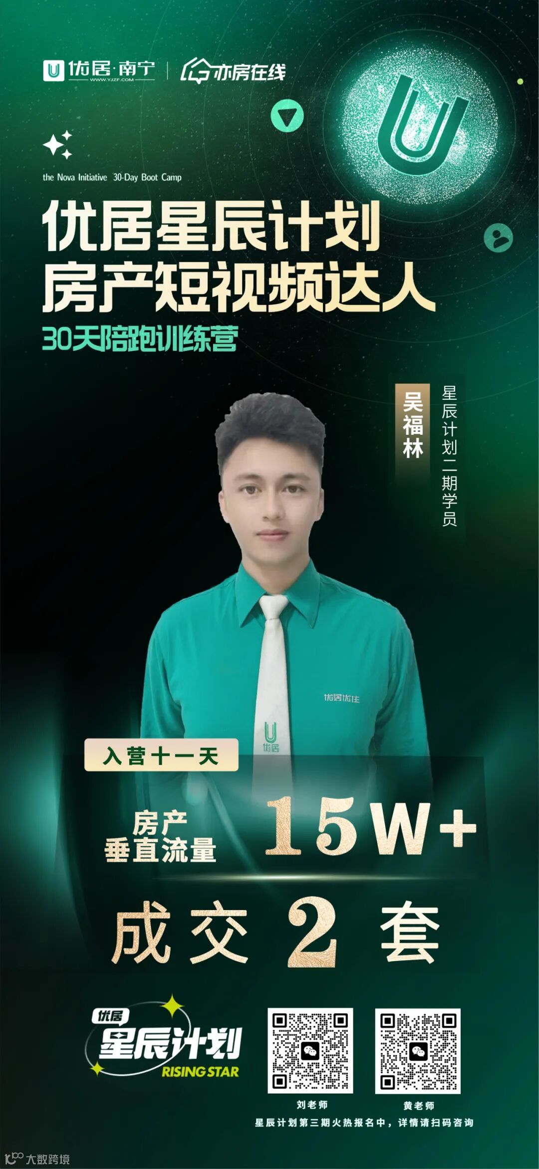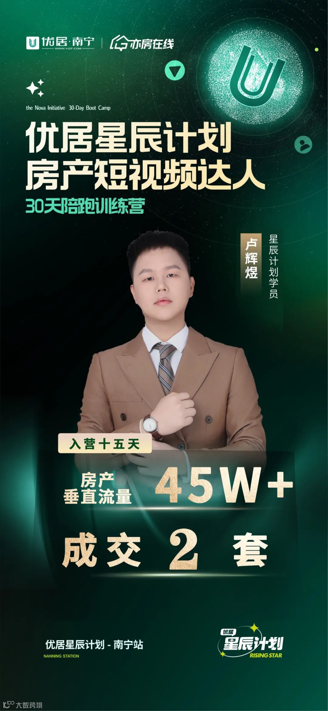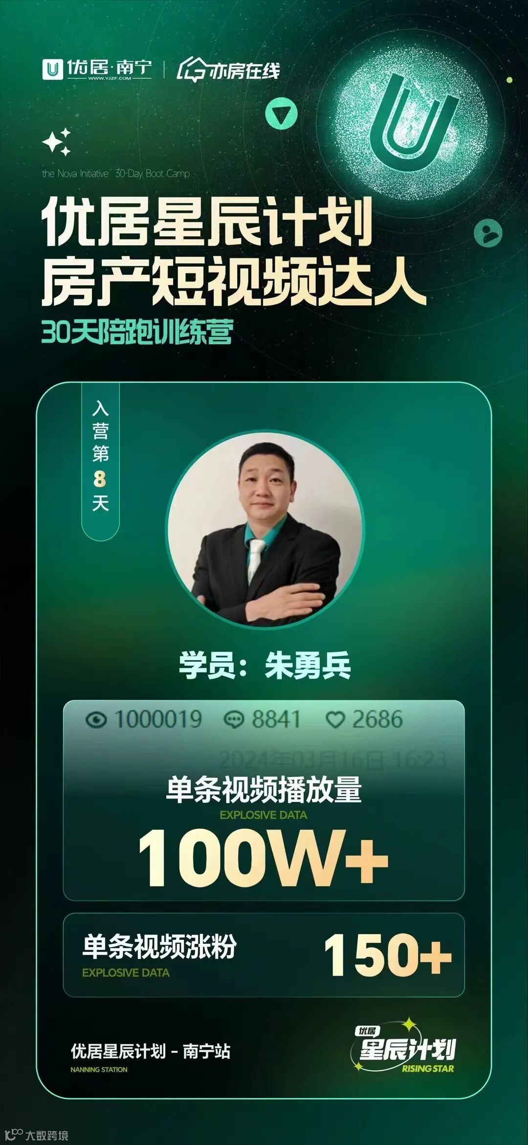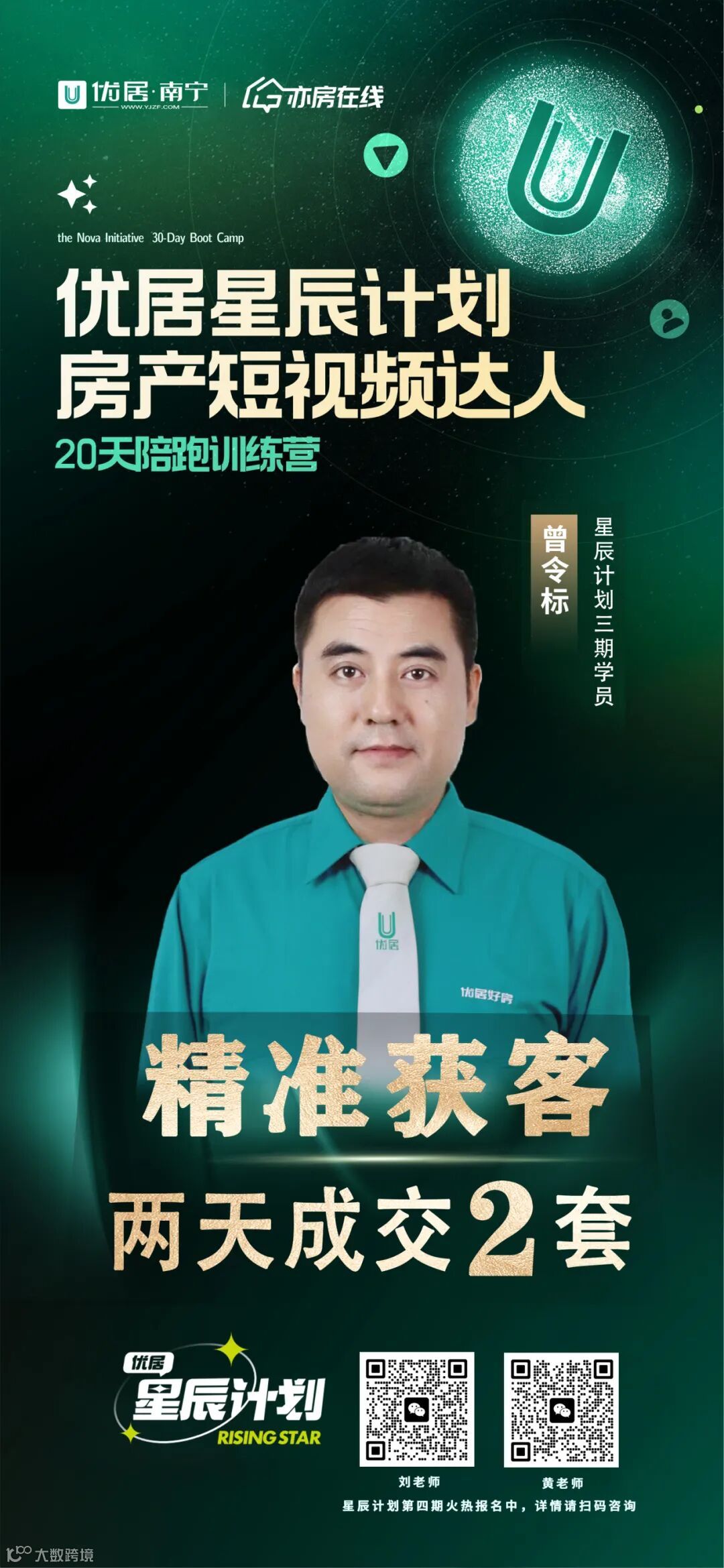 2024年,优居·南宁启动了“星辰计划”抖音30天陪跑训练营,旨在通过一套完整的运营和赋能机制,助力优居平台下的经纪人用新媒体平台,通过短视频&直播获取流量和商机,推动业务增长。