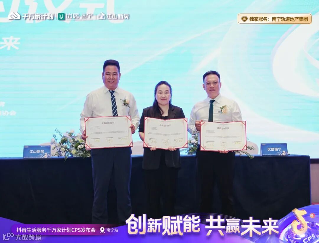 2024年9月3日,优居·南宁&抖音生活服务CPS暨轨道地产合作签约仪式圆满落幕。此次合作不仅是优居平台在房产营销领域的一次创新尝试,也是抖音生活服务CPS模式在南宁房产行业的首次落地。