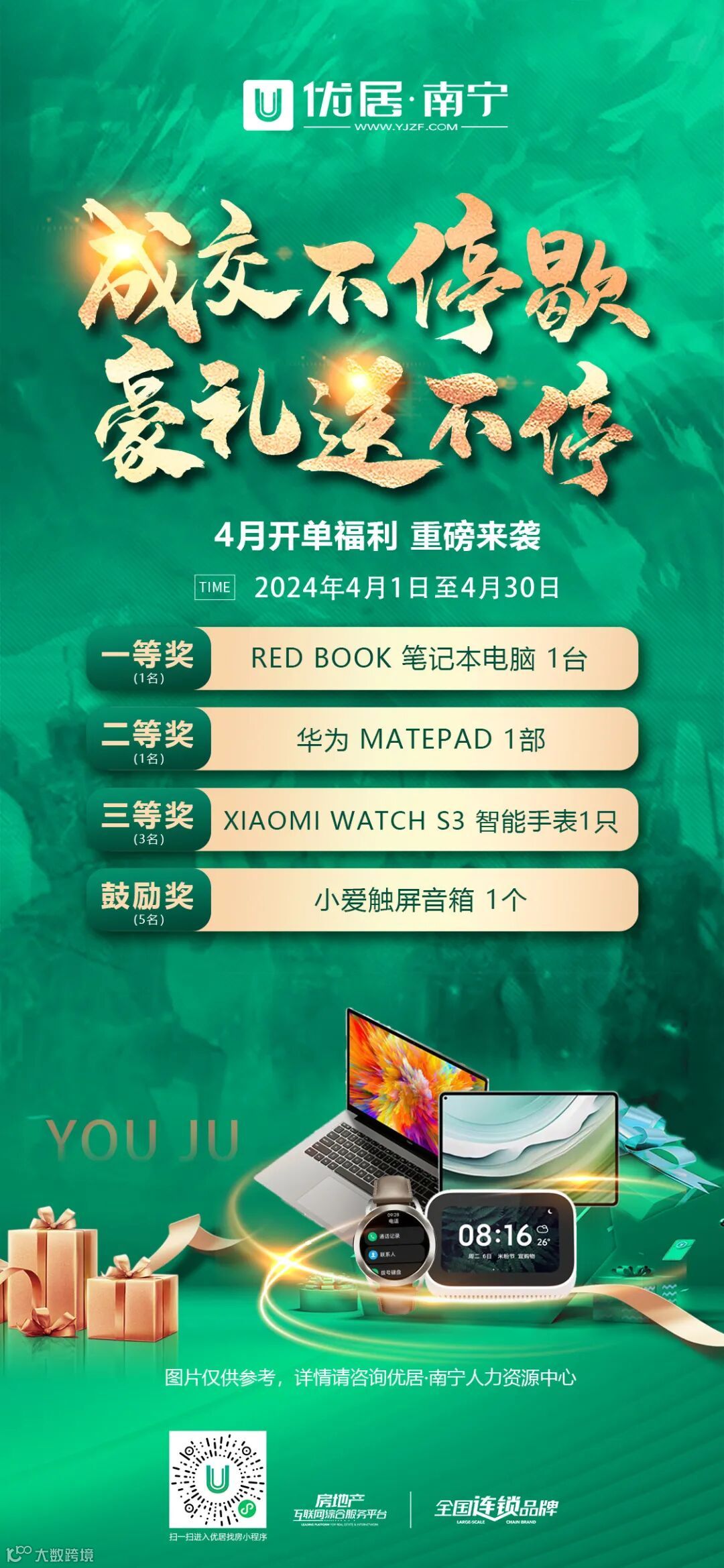 每月,优居·南宁都有开单抽大奖的活动,这不仅增强了平台与经纪人之间的互动与交流,还极大的激发了大家工作的热情和积极性。