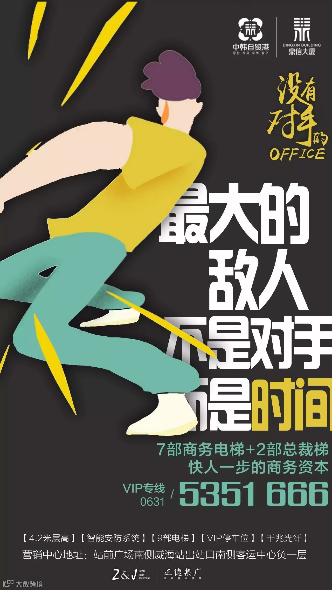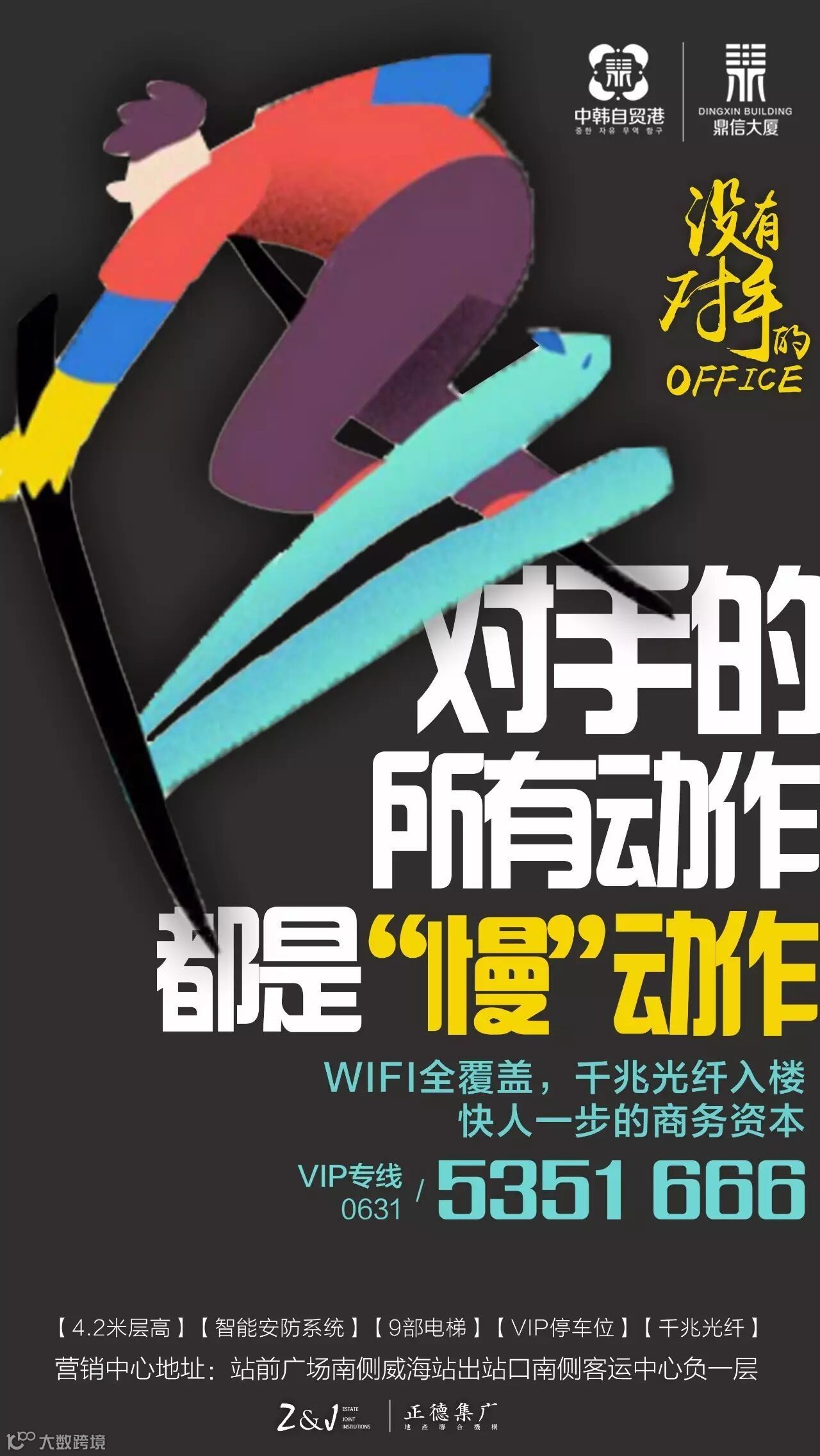 鼎信大厦有“三大独有”:其一,我们独具9部电梯,这位于目前威海写字楼市场电梯数量之首,9部电梯可以充分规避传统写字楼电梯数量少造成的上下班高峰期拥堵,有效提高商务生活效率,电梯的通达同样可以从精神上缓解办公人士的精神压力,让业主每一天都是在愉悦的心情中开启商务办公。其二,我们独具警备安防系统,全部安防人员武装配备,进入大厦需刷卡入内,有效保障业主安全。其三,5A级的精装标准,开阔的视野,无不充分彰显您在此办公的身份和地位。这样的话,鼎信大厦高端的配置恰好能满足您对黄金地段高品质的办公要求,打造您梦想中的创业空间。并且随着轻轨开通逐步拉近威海与世界的距离,与世界同步发展。