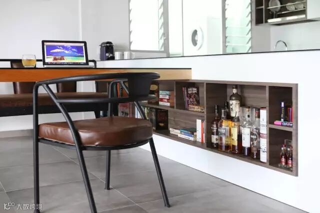 吧台的侧面即使书柜也是酒柜,佩服设计师的巧妙用心。