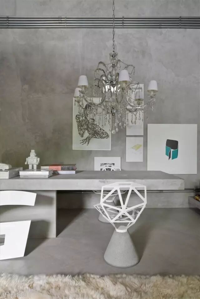 他做了一个混凝土的桌子和沙发,他这样说“作为一个家具设计师,我决定走与别人相反的方向,固定的家具可以创造长久的稳定”。