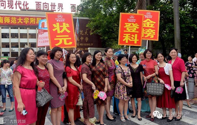 2015年06月07日,广州市,华附门前人群里格外亮眼的是一群身着各色旗袍的考生妈妈,她们笑言“为了孩子第一天就‘旗开得胜’的好寓意。