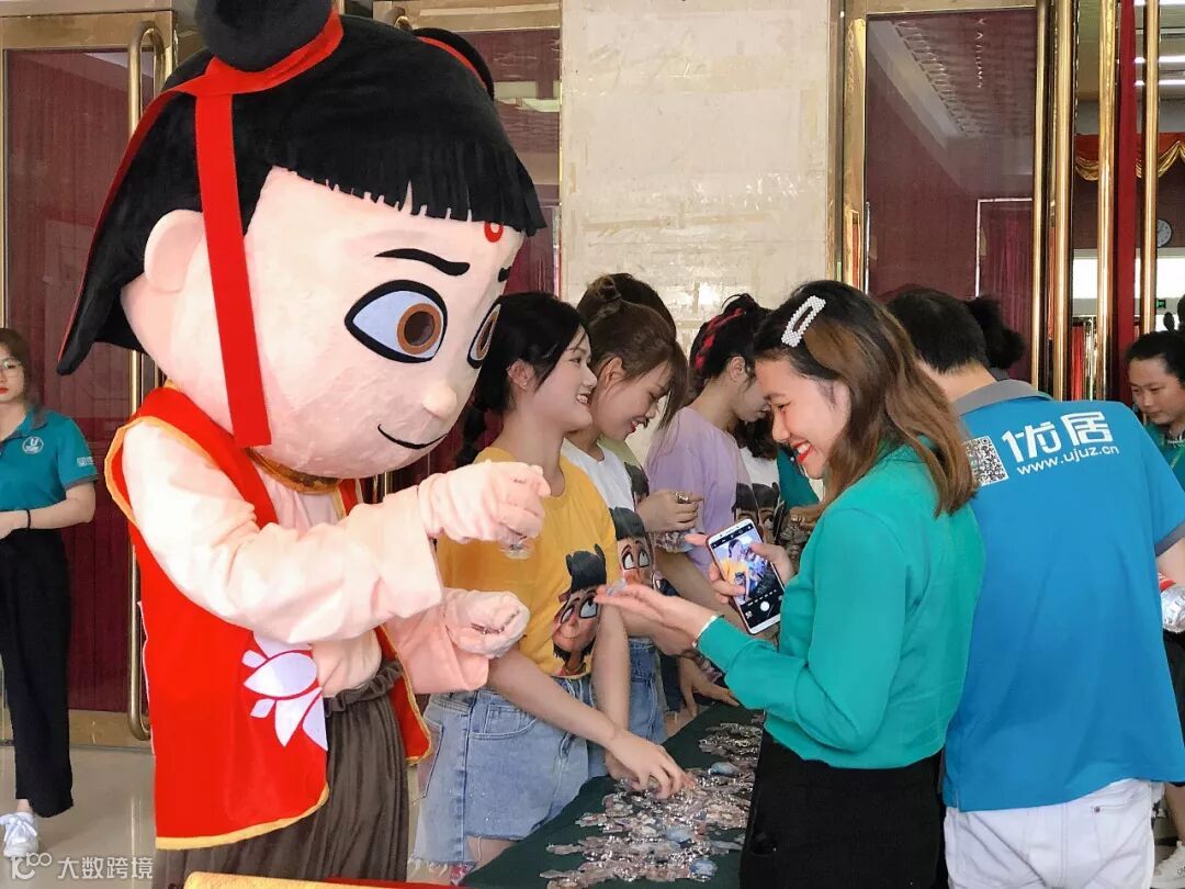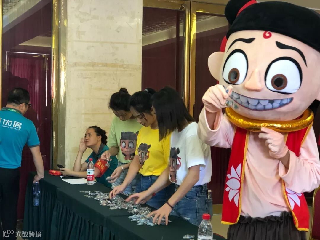 工作人员们为所有到达会场的优居伙伴们送上伴手礼——哪吒主题钥匙扣。