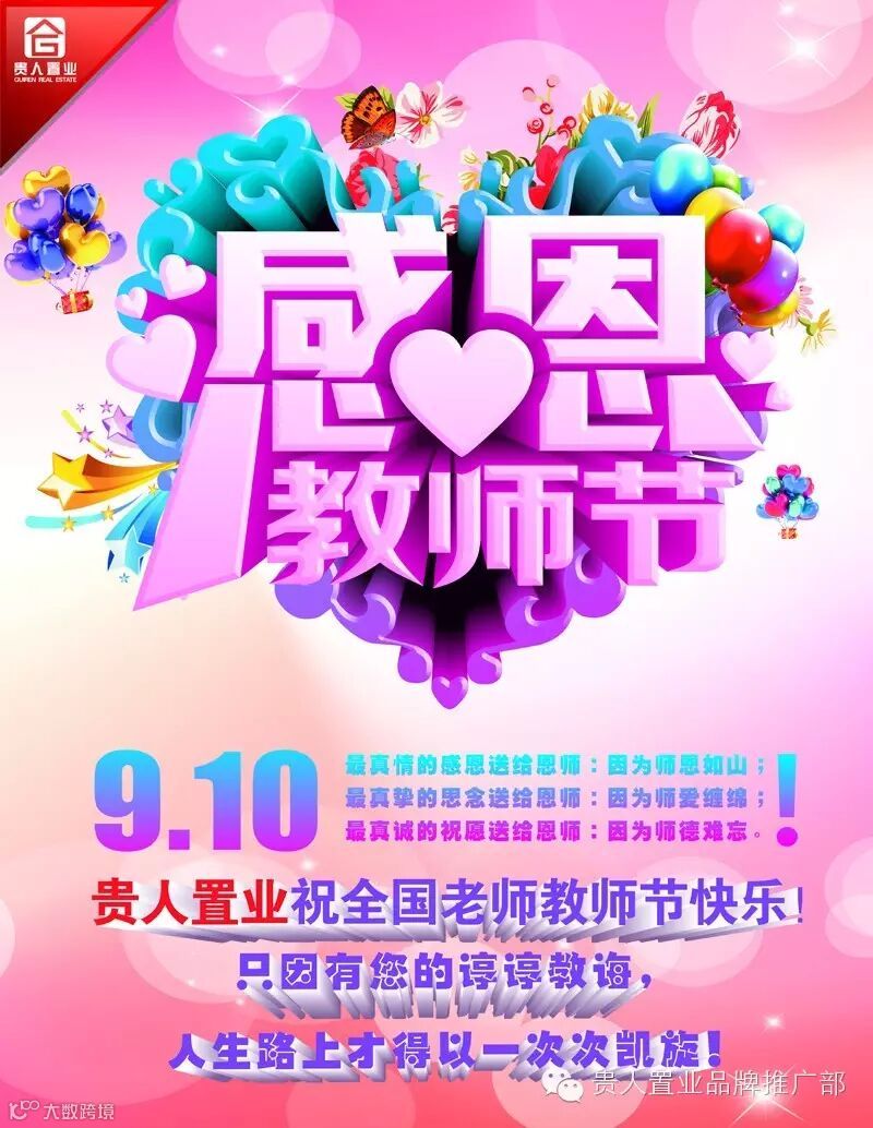 贵人置业祝全体老师9.10教师节日快乐,也感恩贵人的老师们,是你们让我们的伙伴们为梦想插上翅膀,辛苦了老师们!!