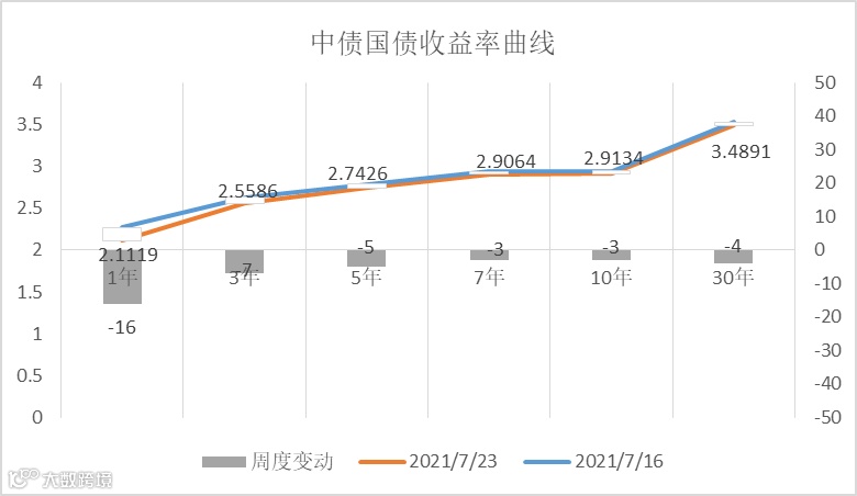 本周国债利率保持下行趋势,10年期国债收益率下行至2.9134%。